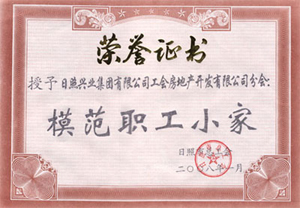 ·2008年,授予“日照興業(yè)集團(tuán)有限公司工會(huì)房地產(chǎn)開發(fā)有限公司工會(huì)模范職工小家”