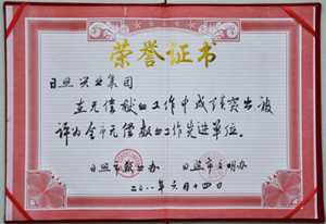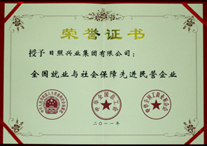 ·2011年1月,授予日照興業(yè)集團(tuán)“全國就業(yè)與社會保障先進(jìn)民營企業(yè)”