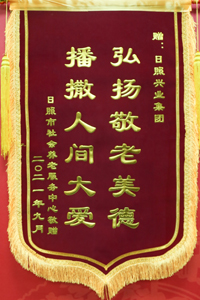 2021年9月,日照市社會(huì)養(yǎng)老服務(wù)中心贈(zèng)予錦旗興業(yè)集團(tuán)”播撒人間大愛,弘揚(yáng)敬老美德“