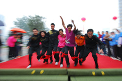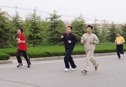 2006年5月1日,第二屆運動會在山海天花園門口舉辦,集團(tuán)董事長丁杰、副總裁申作華在越野比賽中。 |