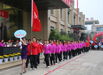 當(dāng)天,來自興業(yè)集團(tuán)各下屬單位的8支代表隊(duì)476名運(yùn)動(dòng)員精神飽滿地參加了“團(tuán)體跳繩”、“開火車”、“協(xié)作運(yùn)球接力”、“車輪滾滾”、“滾雪球”、“拔河”等團(tuán)體項(xiàng)目的比賽,整個(gè)現(xiàn)場(chǎng)氣氛熱烈,充滿激情,充分展示了“務(wù)實(shí)、創(chuàng)新、拼搏、進(jìn)取、奉獻(xiàn)”的興業(yè)精神和活力、和諧的企業(yè)風(fēng)采。另外,興業(yè)社區(qū)中老年文體活動(dòng)俱樂部在開幕式上進(jìn)行了太極拳和健身操表演。精彩的開幕式表演和緊張激烈的比賽吸引了眾多市民駐足觀看。