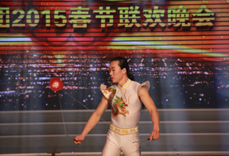 《星光大道》年度六強(qiáng)、被譽(yù)為“舞臺(tái)開心果”的陸海濤登場獻(xiàn)唱自己的新歌《好媳婦》,原汁原味的東北風(fēng)味唱腔幽默風(fēng)趣,引爆現(xiàn)場氣氛,他還親切地與觀眾互動(dòng),快速切換模仿模式,分別用楊坤、趙本山、劉歡、騰格爾、殷秀梅的聲腔表演歌曲《無所謂》,惟妙惟肖,博得現(xiàn)場一陣陣掌聲;集團(tuán)春晚常青樹——興業(yè)社區(qū)文體活動(dòng)俱樂部的中老年朋友們精心編排了舞蹈《幸福如意》,舞出了6萬業(yè)主“住在興業(yè),一起幸!钡男穆;大型人屏互動(dòng)節(jié)目《我是興業(yè)小蘋果》,將臺(tái)上、臺(tái)下融為一體,整個(gè)演播大廳變?yōu)闅g樂舞動(dòng)的海洋;歌伴舞《愿得一人心》浪漫纏綿,表達(dá)了祝福天下有情人終成眷屬的美好心愿;2008年曾作為特邀演員參演興業(yè)春晚的雜技演員周天,再次登臺(tái)帶來全新雜技表演《抖空竹》,他技藝超群,令人目不暇接,引得現(xiàn)場觀眾一陣陣驚呼贊嘆。